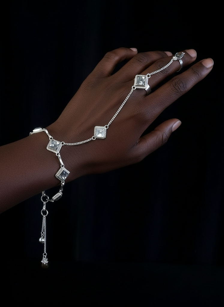 The size of the bracelet is adjustable. The ring size is 7+ (17.5/N)
